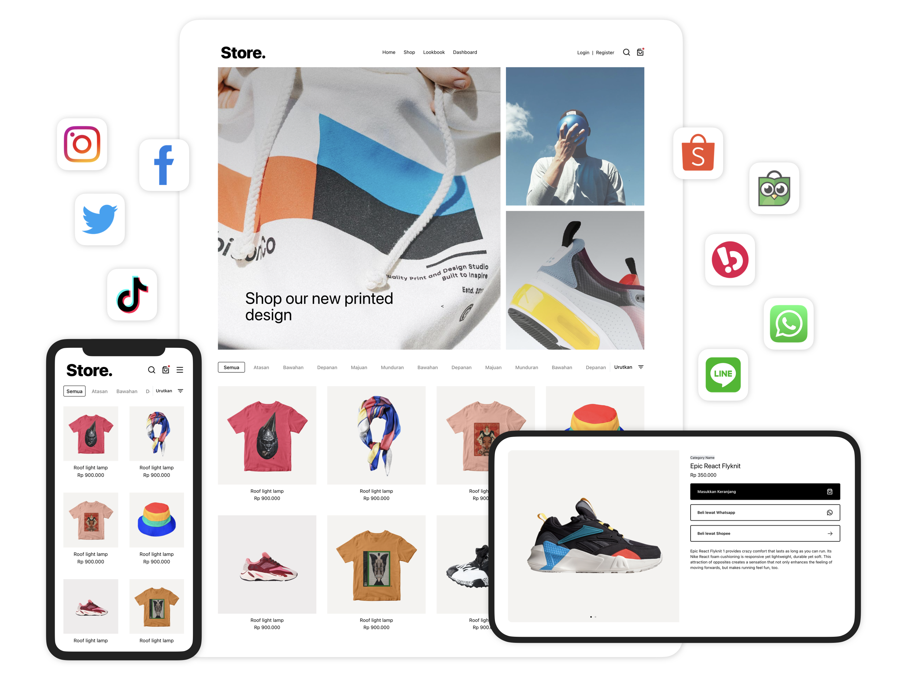 Website e-commmerce harusnya menjadi channel utama bagi sebuah brand. Oleh karena itu kecepatan loading, UI/UX, dan integrasi dengan channel penjualan (seperti marketplace dan sosial media) adalah suatu keniscayaan.